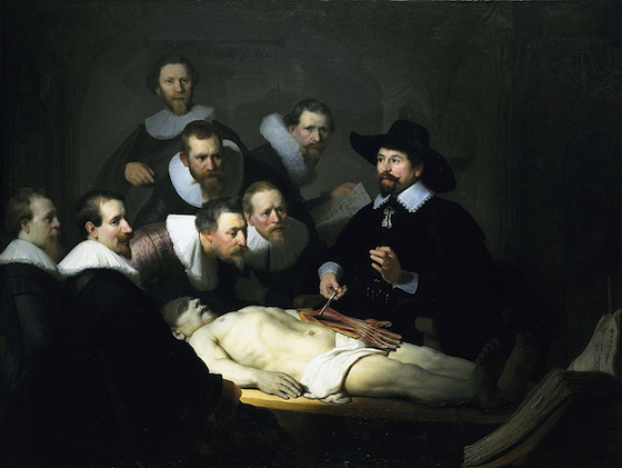 I am very interested in the work of Fabris, especially this piece, which I feel has managed to take the close and cramped composition of the scene of surgeons in lesson and kept the subject matter to within an appropriate range, that of movement, engineering and the ‘spark of life’. The subjects within the photograph all have their distinctive appearances and Fabris chosen to replicate the differing gaze and eyelines of the original painting subjects. The photograph reflects the idea of the subjects deep in thought as they contemplate the lesson and discussion and how it fits into their own learning. Fabris has even kept the one subject who looks out of the scene straight at the viewer, although unlike the painting it appears to me as if the subject is looking slightly over to the left of the viewers ear, which gives the impression that he was surprised to find himself being photographed. This introduces a bit of cognitive dissonance for me, as I try to work out whether he was trying to avoid looking straight into the lens or if he was looking at Fabris or an assistant of Fabris who happened to be on the left hand side of the camera. For me, this breaks the spell and I start to search the images for other things to examine. In doing so, has Fabris accidentally made me the anatomist, as I surgically scour the image studying it in depth?