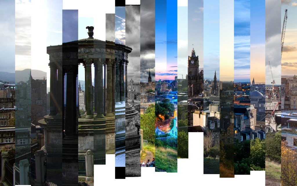As with Exercise 1.1 I chose to rework the images in a similar style of Corinne Vionnet where the images are stacked on top of each other to produce a photo-montage of the view. All the images were aligned and sized on the common structure which is the Burns Monument which stands in the foreground.